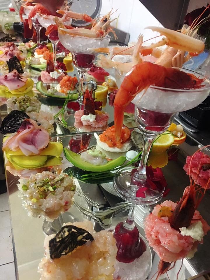 Nei menu, potrete trovare antipasti classici come il sempreverde sautè di vongole e cozze, i misti gratinati, la ratatouille di verdure, il tris di pesce crudo, ostriche e capesante in tartare...